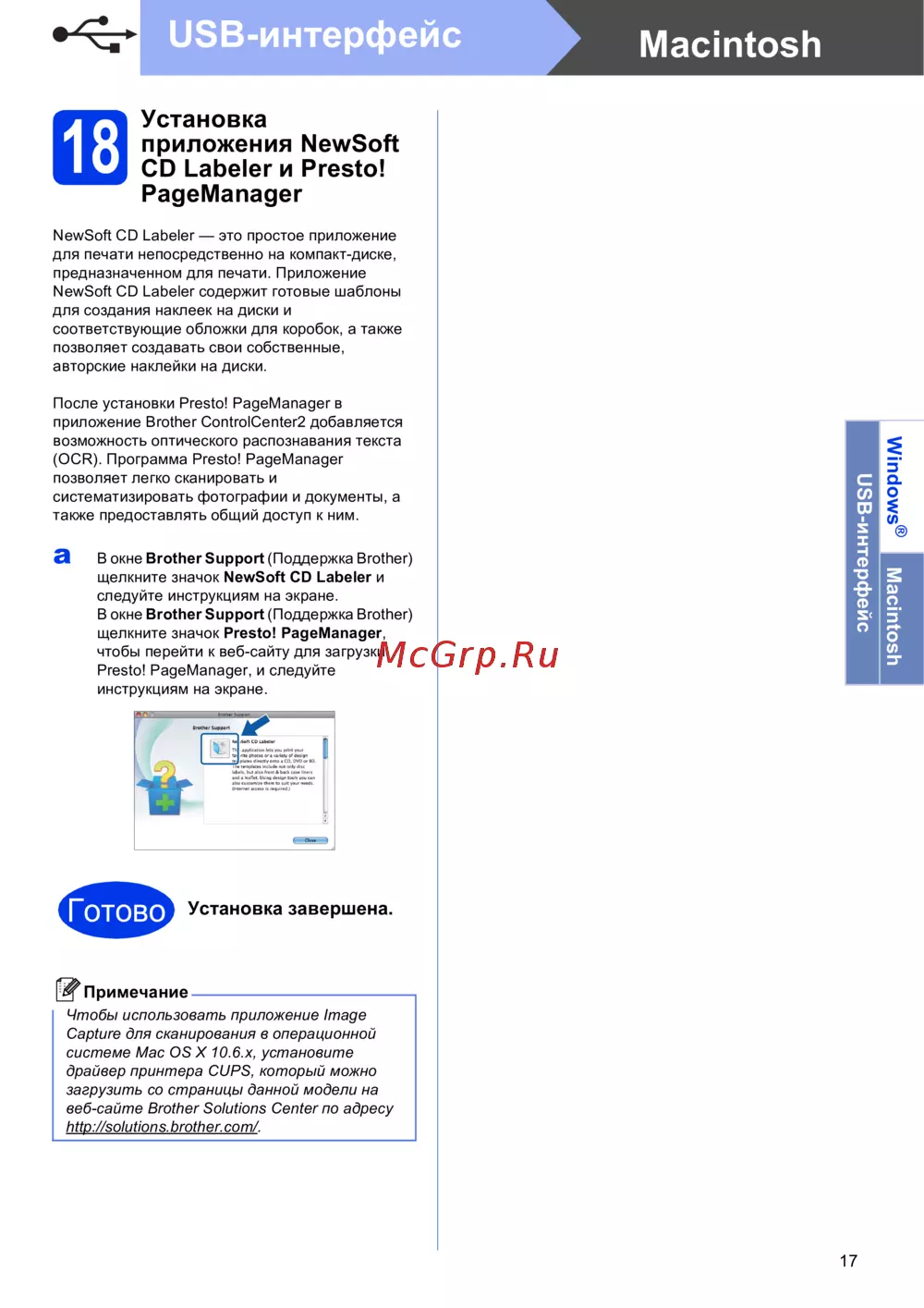 - Пользователи операционной системы mac могут посетить веб узел brother creativecenter по следующему адресу http www brother com creativecenter p.42