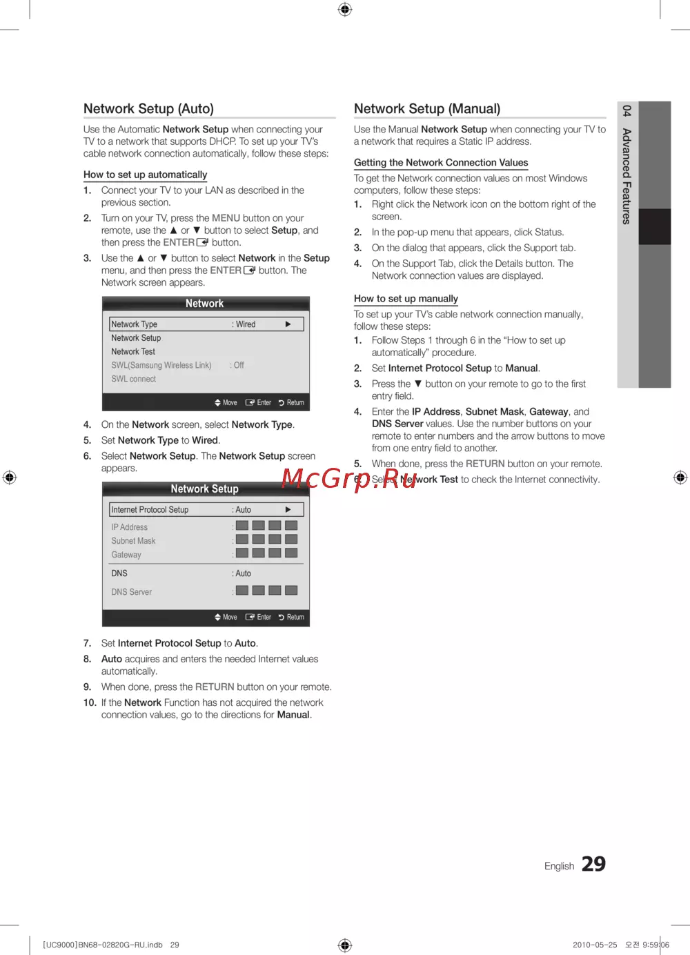 - Настройка сети ручной p.93