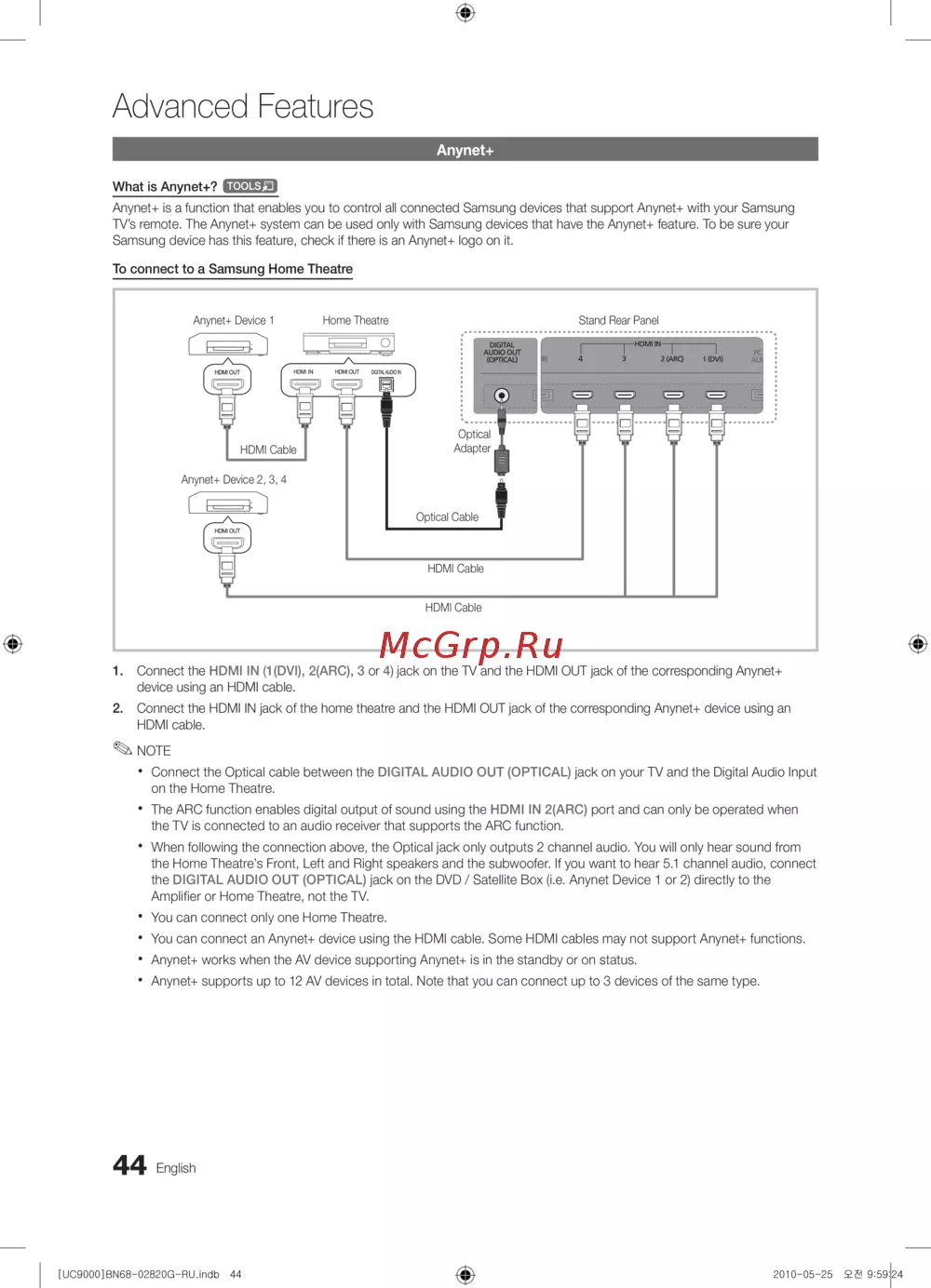 - Переключение между устройствами поддерживающими функцию anynet p.105