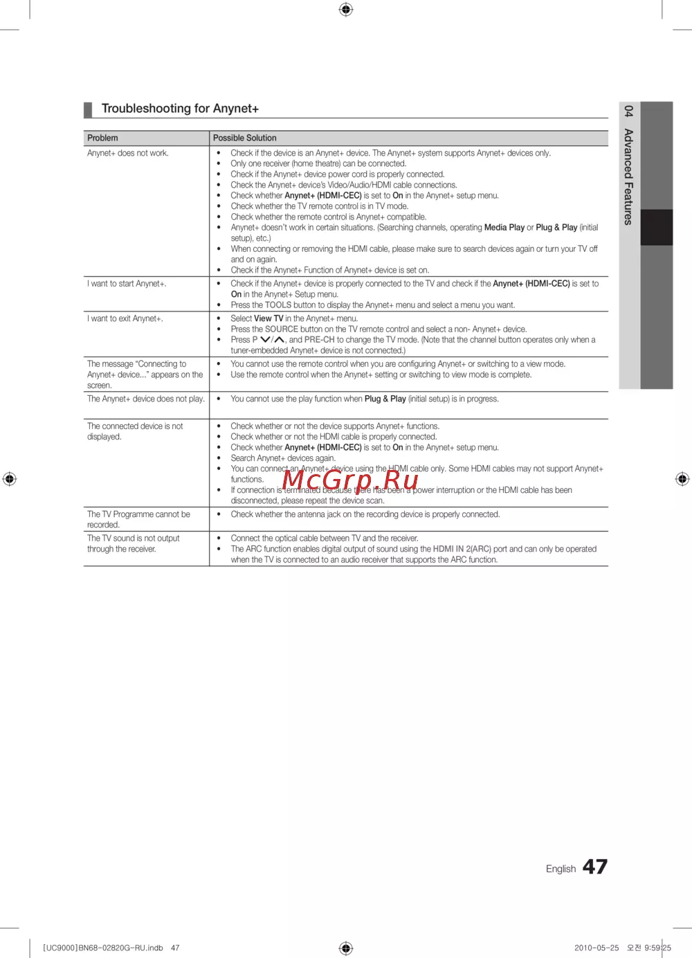 - Поиск и устранение неисправностей в устройствах с поддержкой anynet p.107