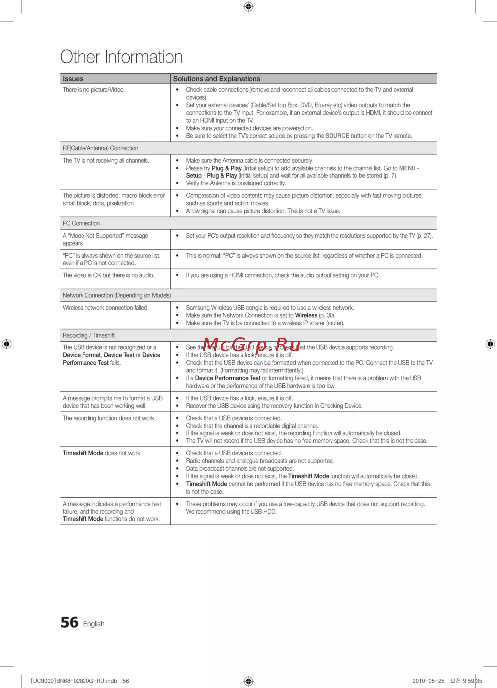 - Поиск и устранение неисправностей в устройствах с поддержкой anynet p.107