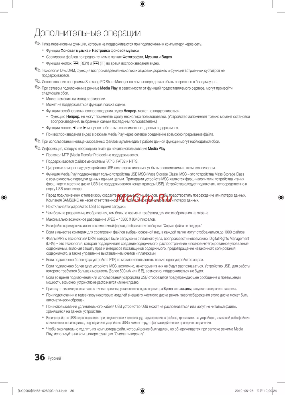 Samsung UE55C9000SW — ограничения и функции Media Play на телевизорах [96/121]