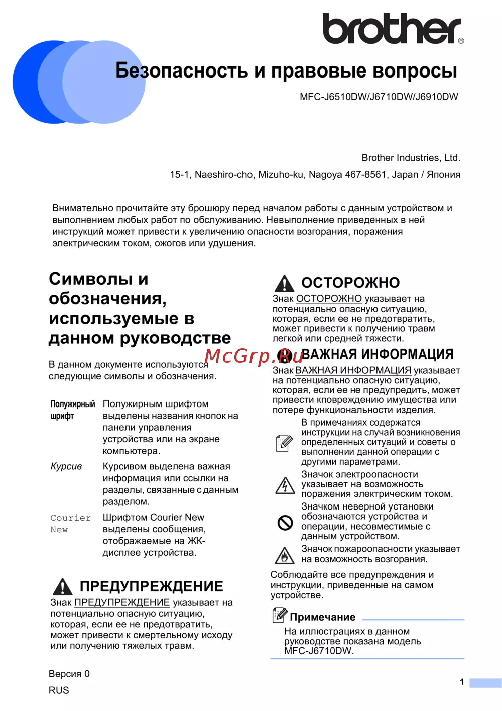 Brother MFC-J6510DW — руководство по безопасности и обозначениям для устройств [1/14]