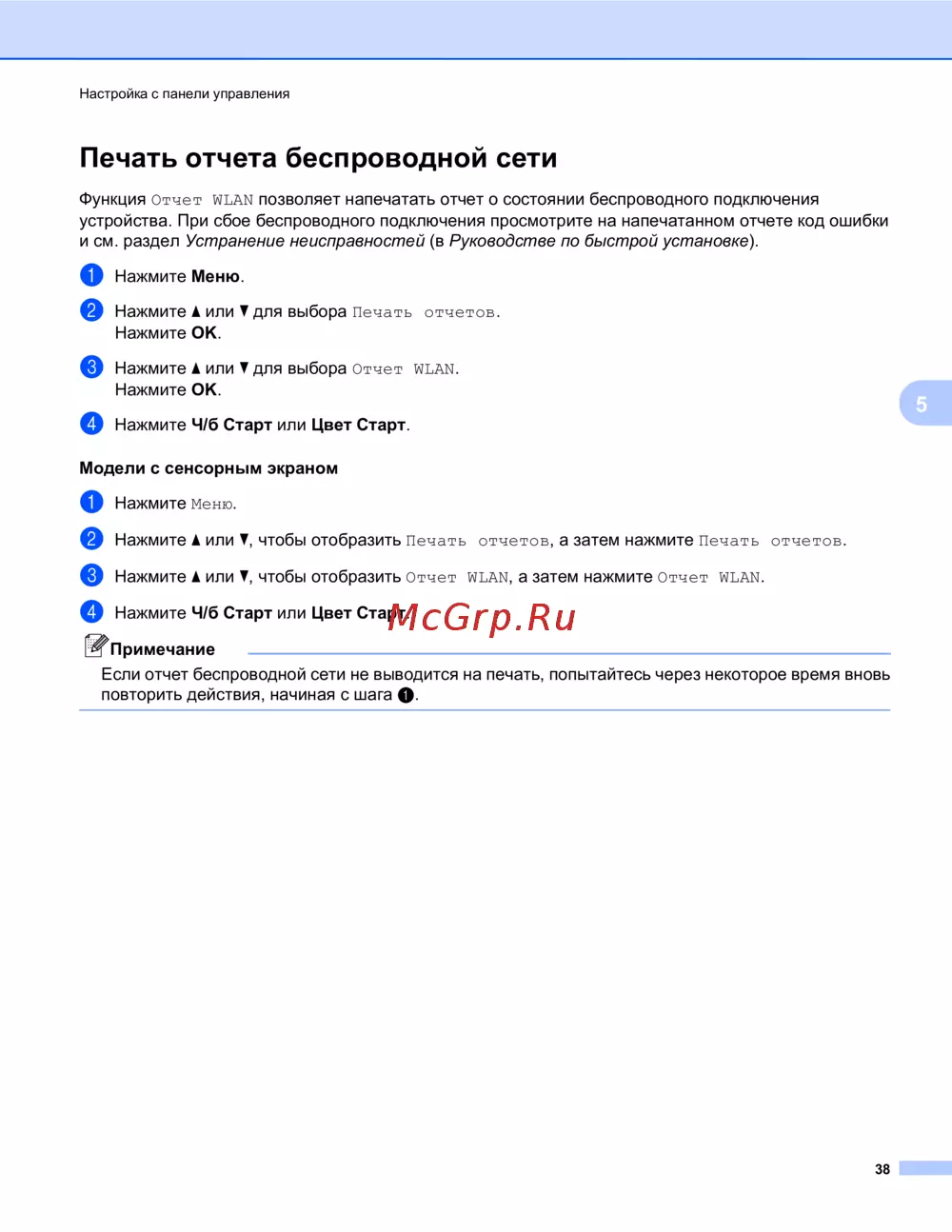 - Настройка устройства для беспроводной сети с помощью функции wps или аoss в меню панели управления p.20