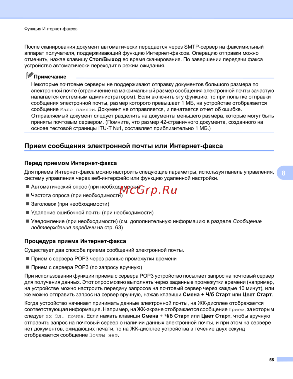 Brother MFC-J6510DW — функция Интернет-факсов: отправка и прием документов по электронной почте [63/84]