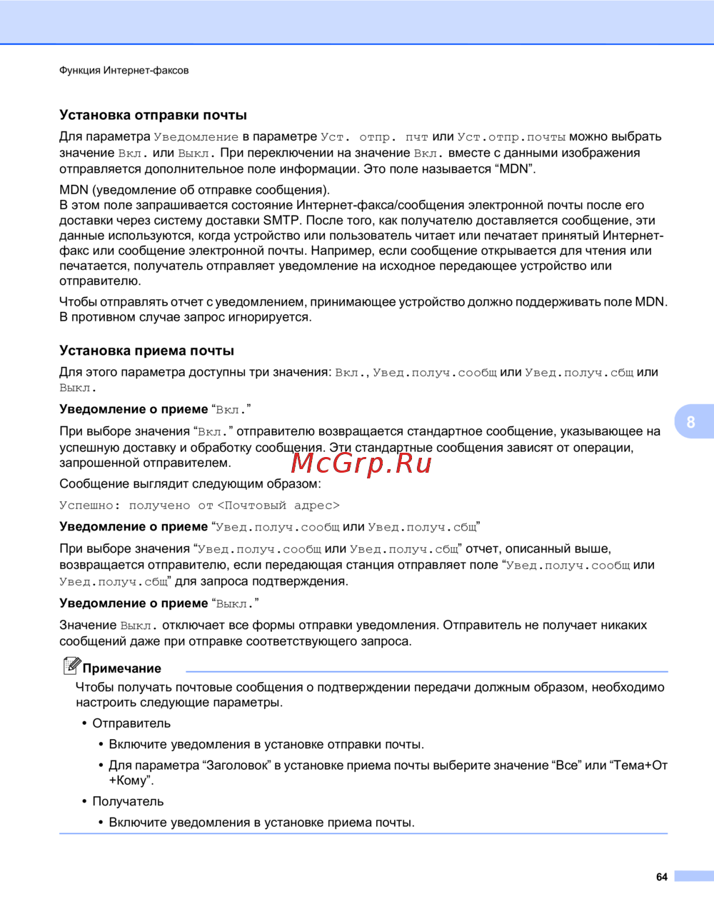 - Прием сообщения электронной почты или интернет факса p.63