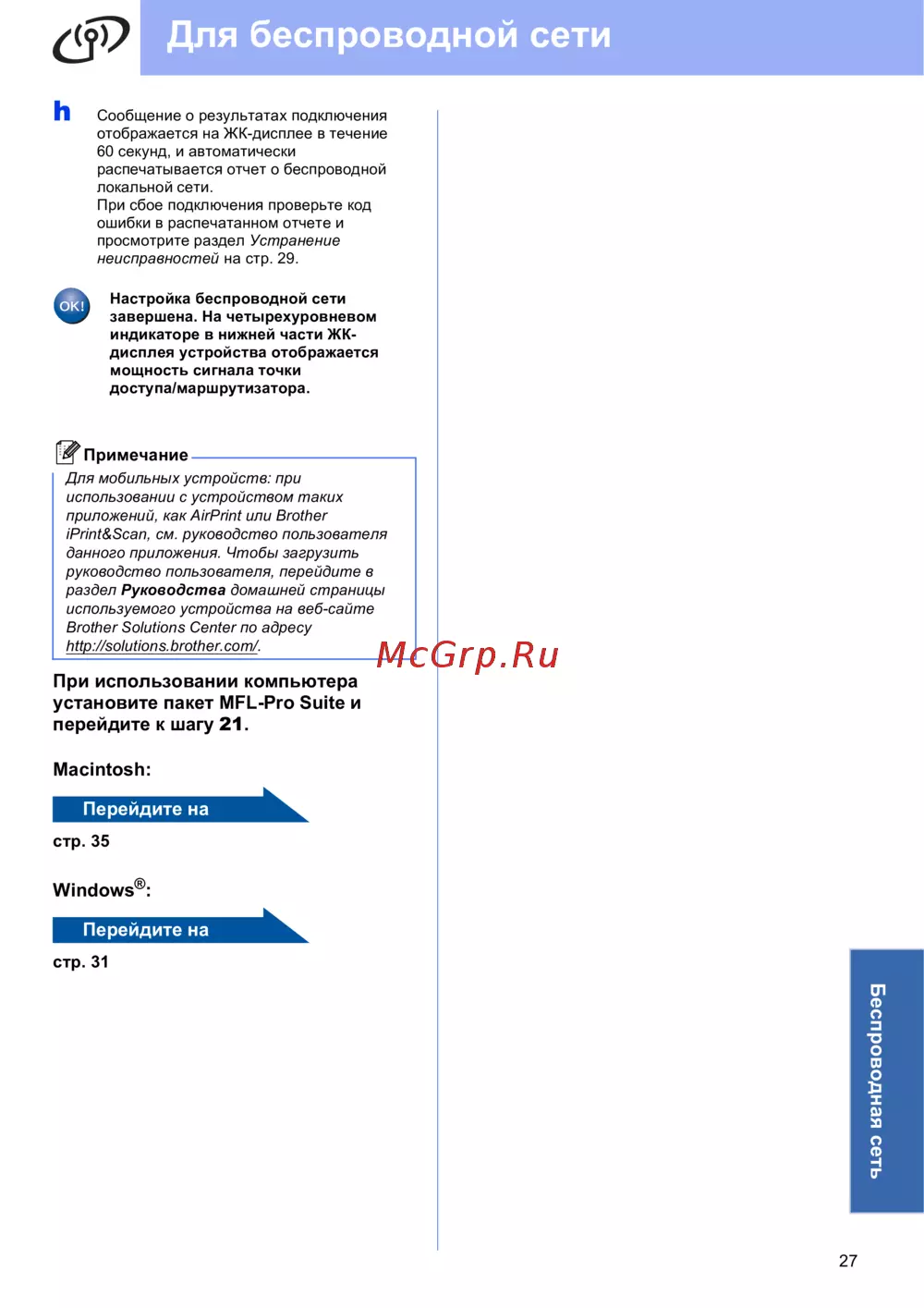 Brother MFC-J6510DW — настройка и устранение проблем беспроводной сети [27/39]