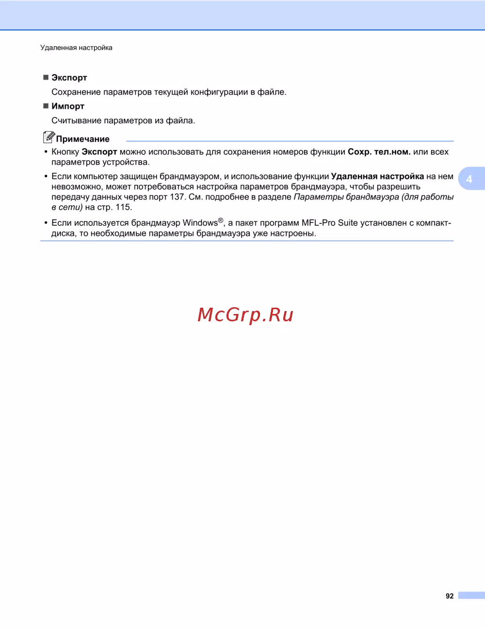 Brother MFC-J6510DW — удаленная настройка: Экспорт и Импорт конфигурации устройства [99/238]