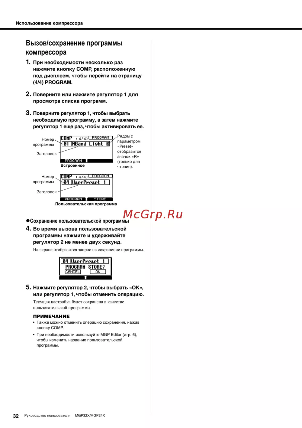 ![Yamaha MGP32X [32/56] Сохранение пользовательской программы](/views2/1829433/page32/bg20.png)