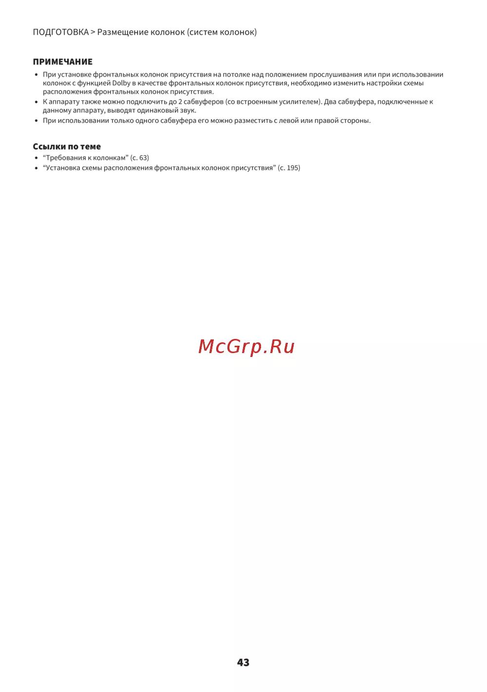 - Использование колонок dolby enabled в качестве фронтальных колонок присутствия p.372