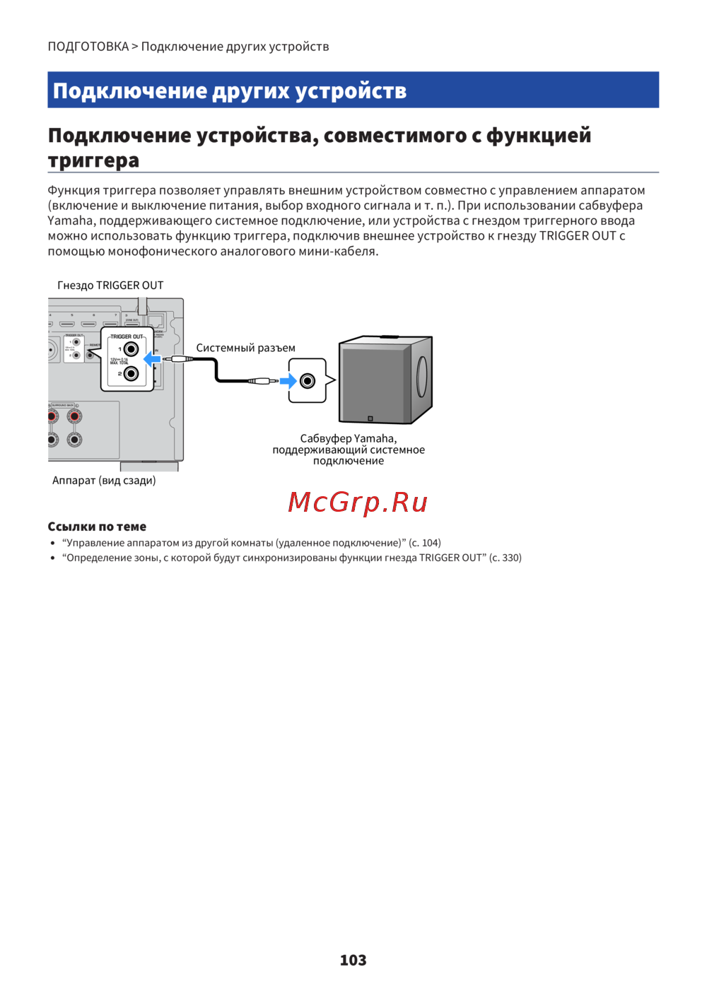Yamaha, поддерживающего системное подключение, или устройства с гнездом триггерного ввода