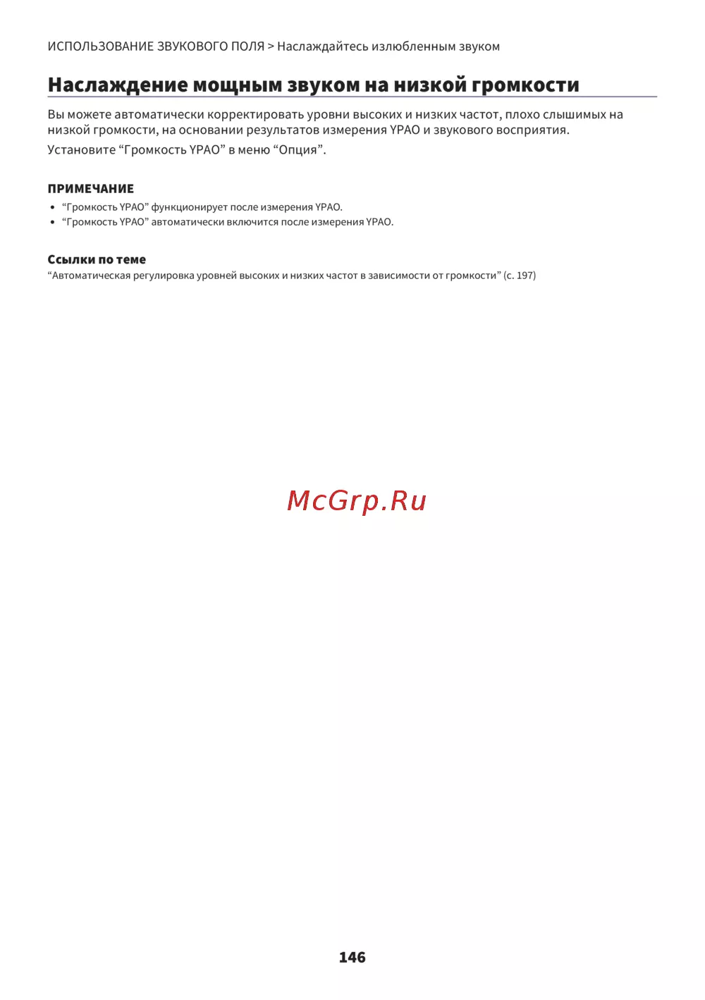 “Громкость YPAO” автоматически включится после измерения YPAO.