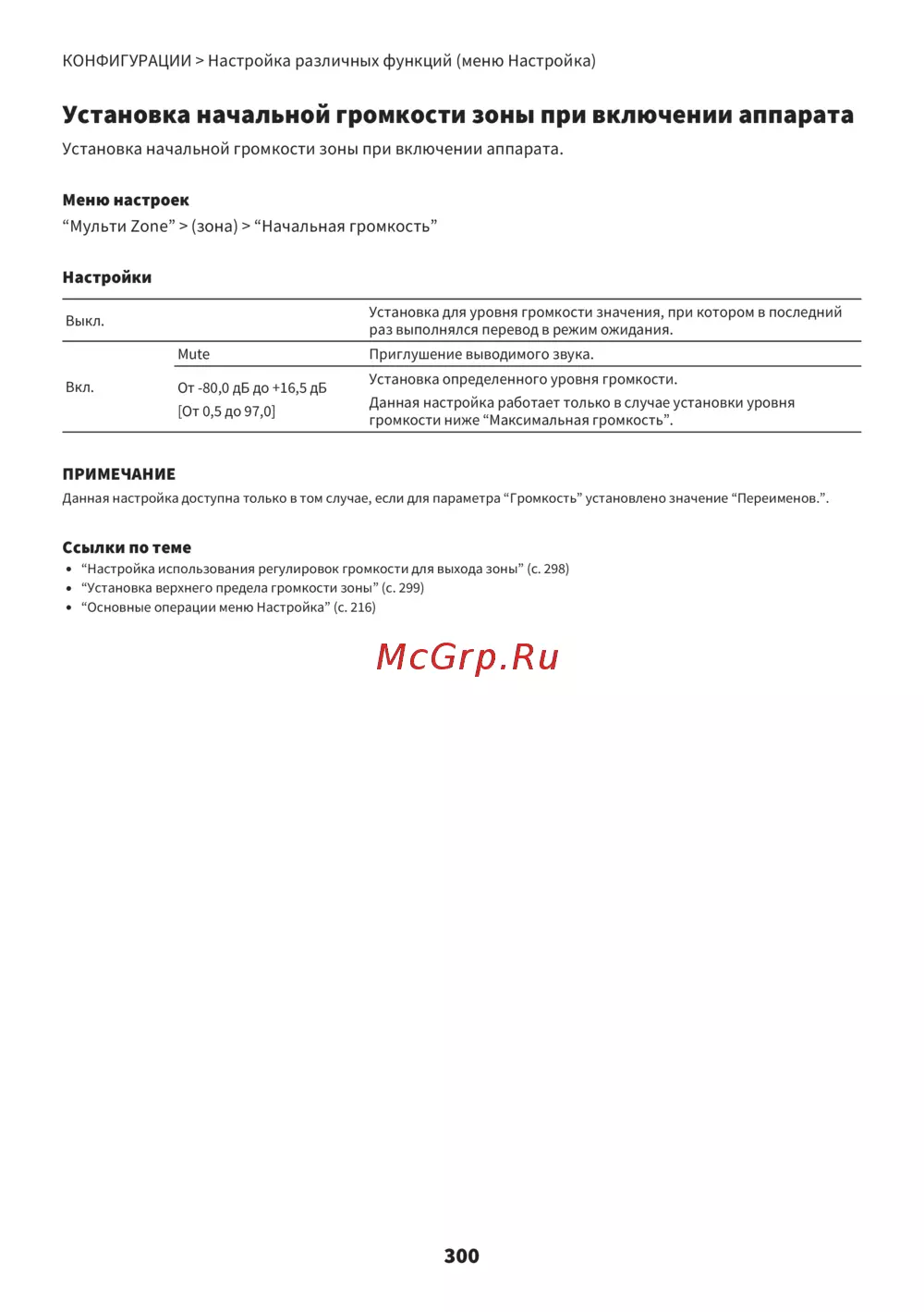 “Настройка использования регулировок громкости для выхода зоны”(c. 298)