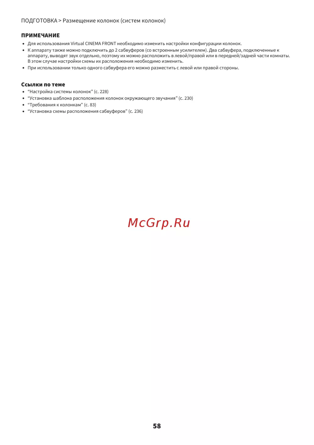 “Установка шаблона расположения колонок окружающего звучания”(c. 230)