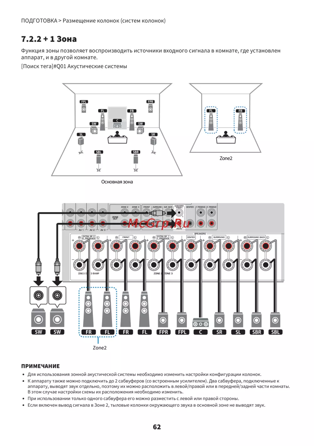 Yamaha RX-A6A [62/447] Функция зоны позволяет воспроизводить источники входного сигнала в комнате где установлен аппарат и в другой комнате поиск тега q01 акустические системы