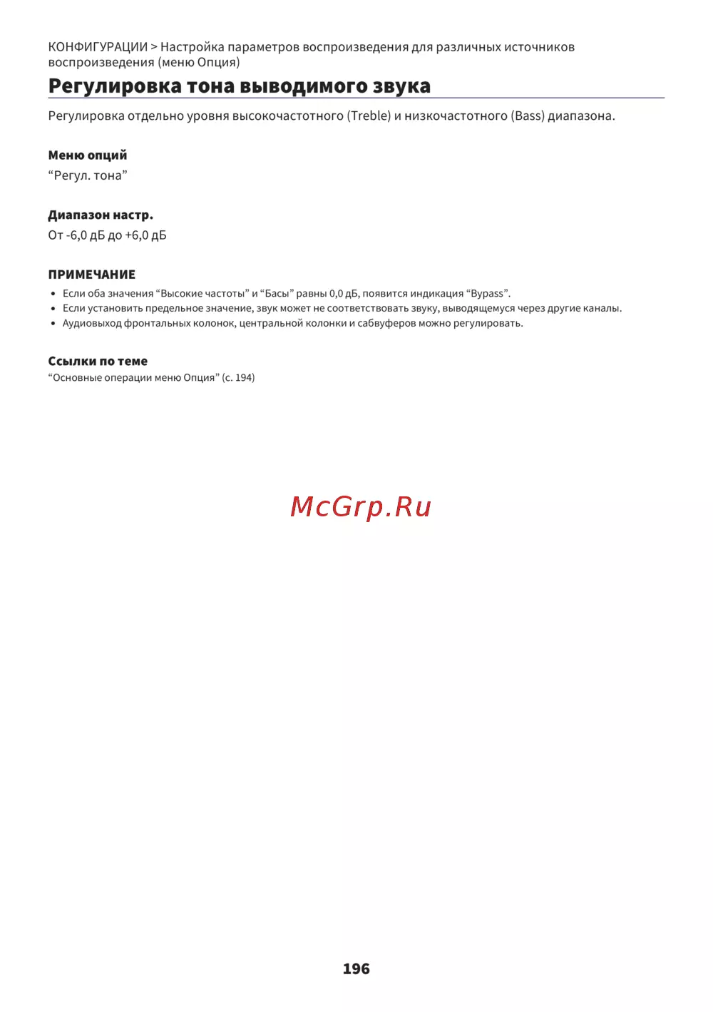 - Настройка параметров воспроизведения для различных источников воспроизведения меню опция 194 p.6