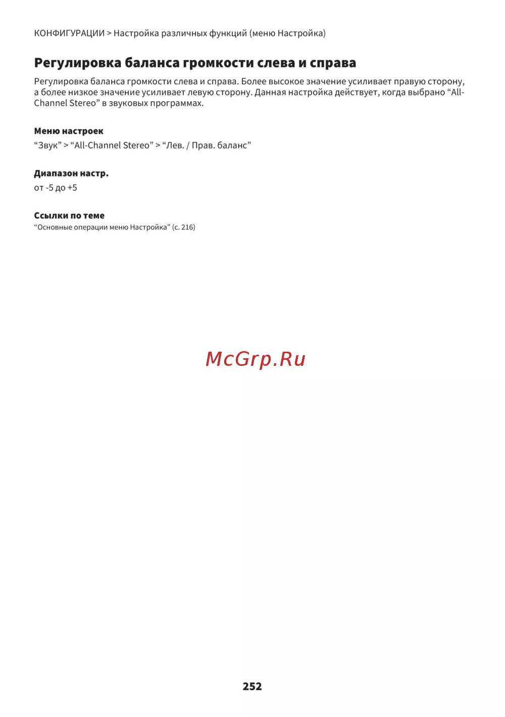 “Звук” > “All-Channel Stereo” > “Лев. / Прав. баланс”
