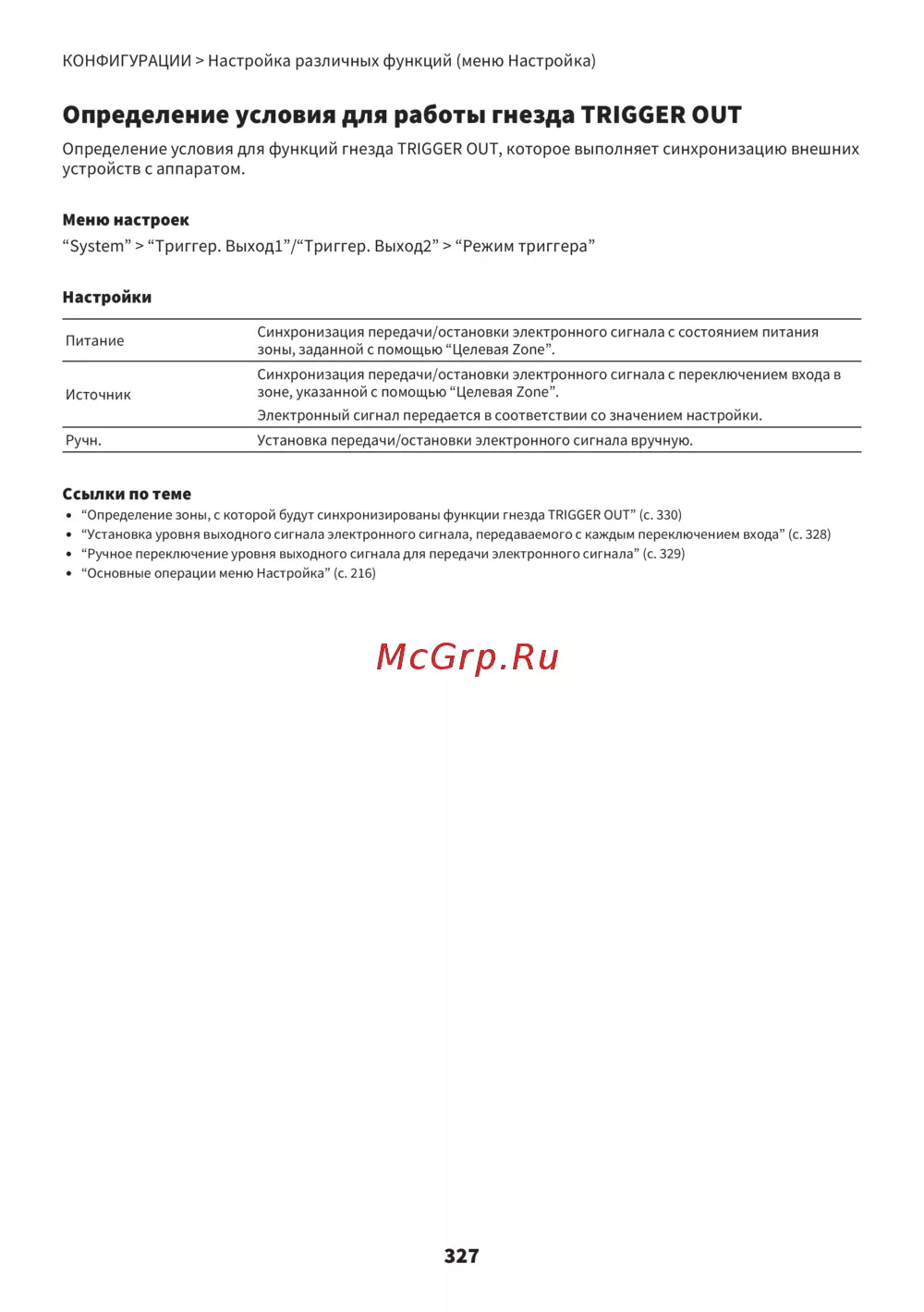 “Определение зоны, с которой будут синхронизированы функции гнезда TRIGGER OUT”(c. 330)