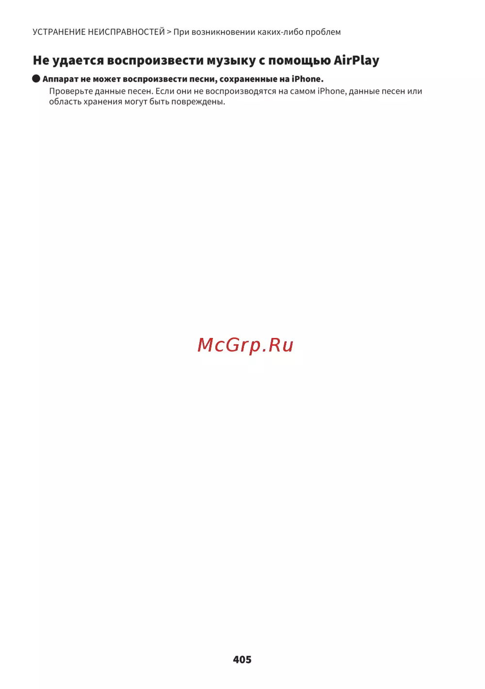 Yamaha RX-A8A [405/447] Не удается воспроизвести музыку с помощью airplay