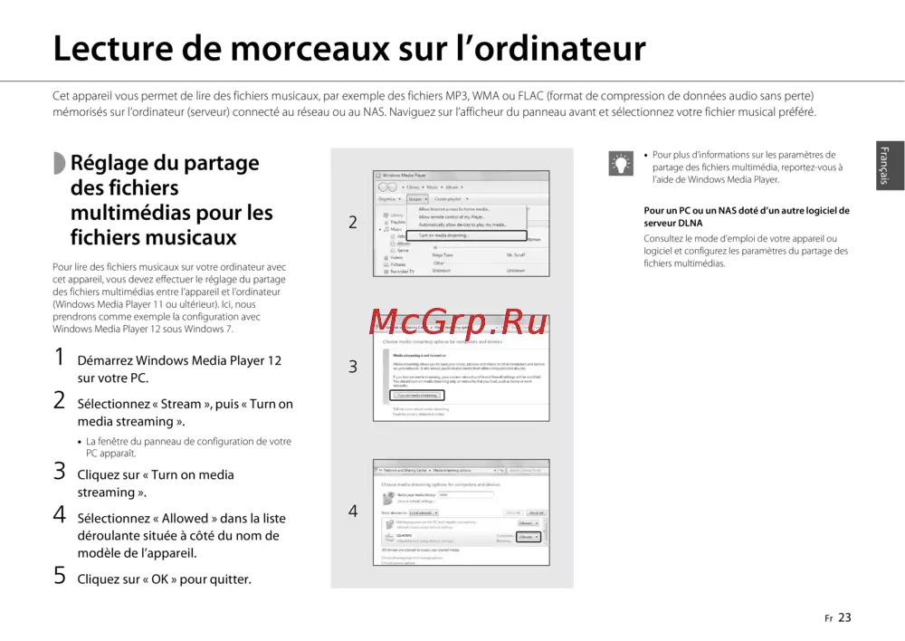 (Windows Media Player 11 ou ultérieur). Ici, nous