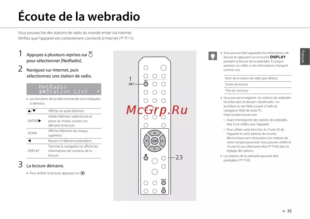 Yamaha CD-NT670 — guide d'écoute de la webradio : comment profiter des stations en ligne [98/475]