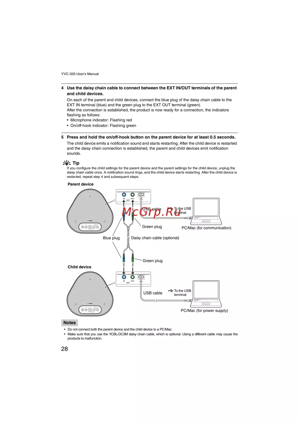 Yamaha YVC-330 [29/278] Use the daisy chain cable to connect between the ext in out terminals of the parent and child devices
