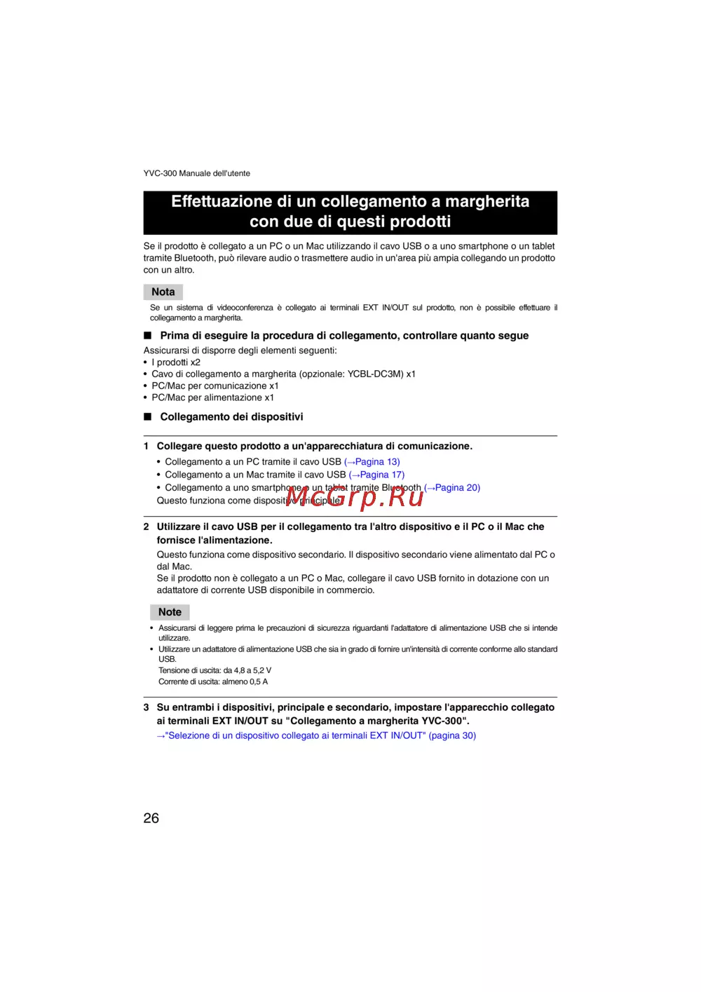 ai terminali EXT IN/OUT su "Collegamento a margherita YVC-300".