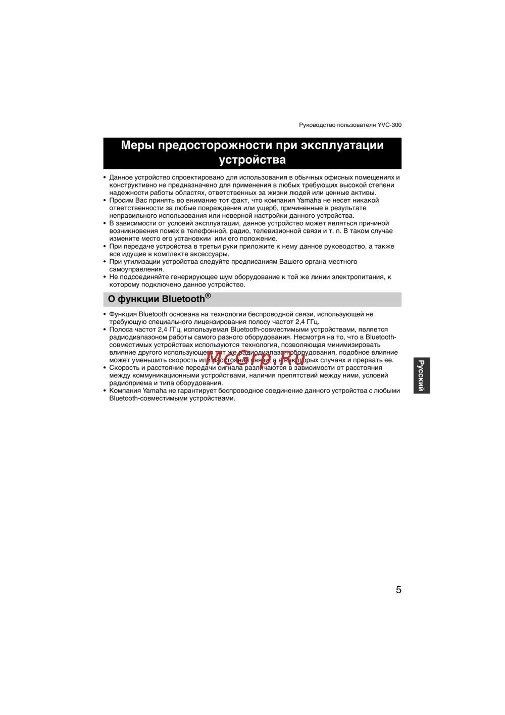 • Просим Вас принять во внимание тот факт, что компания Yamaha не несет никакой