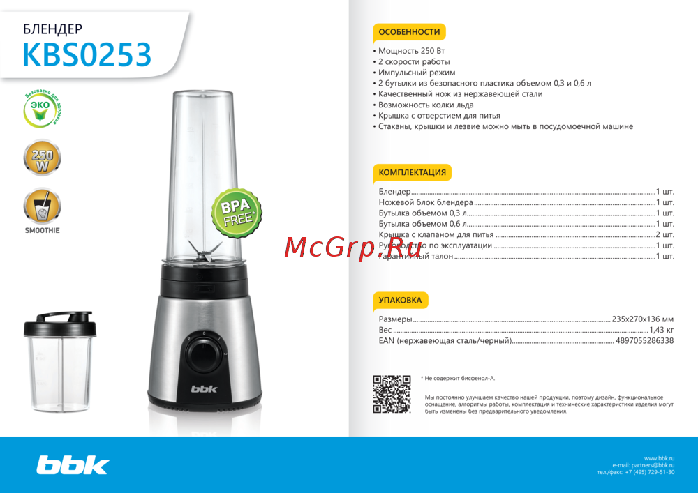 BBK KBS0253 — комплектация и особенности блендера с двумя бутылками [1/1]