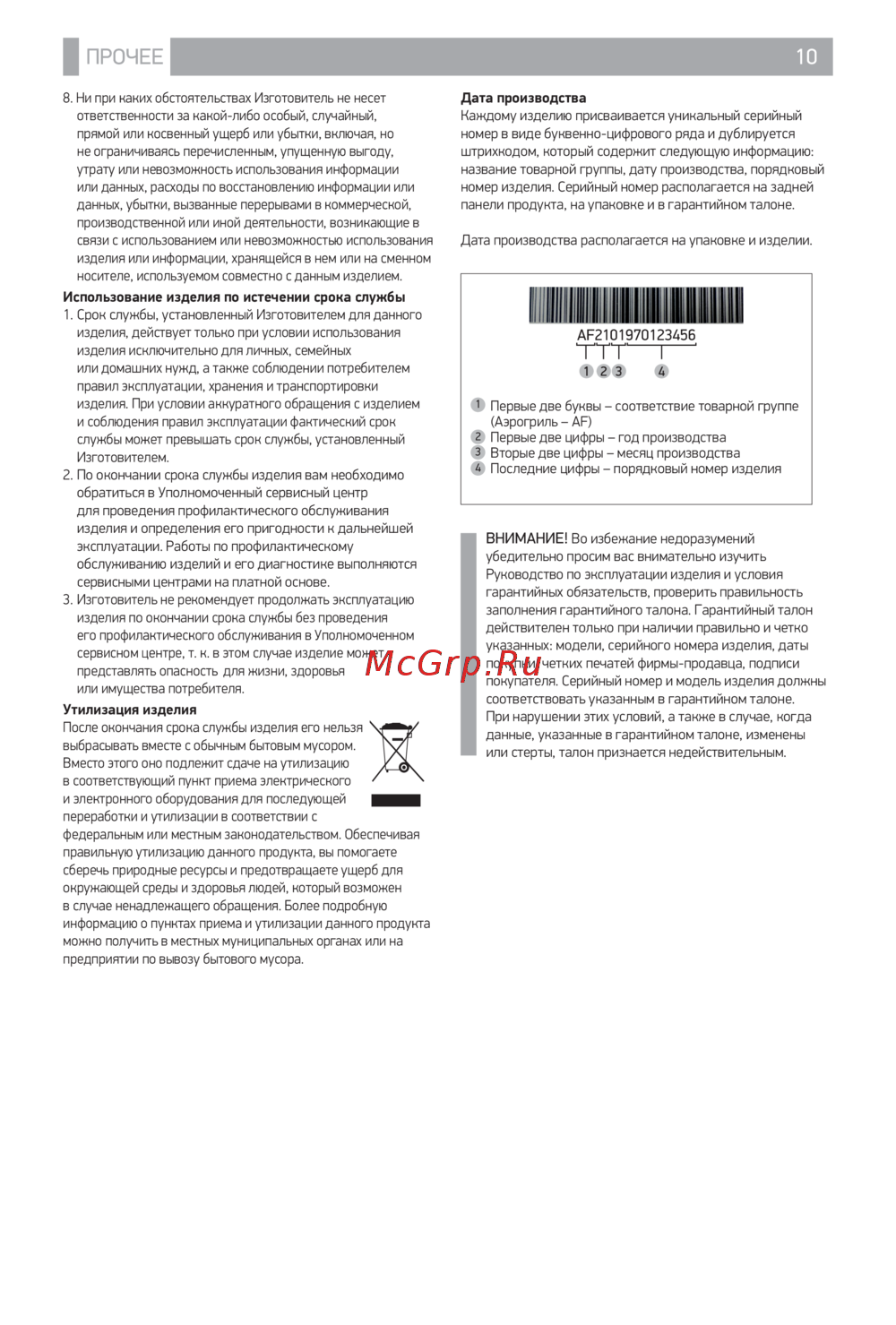 BBK AF505D — правила эксплуатации и утилизации изделий для пользователей [10/12]