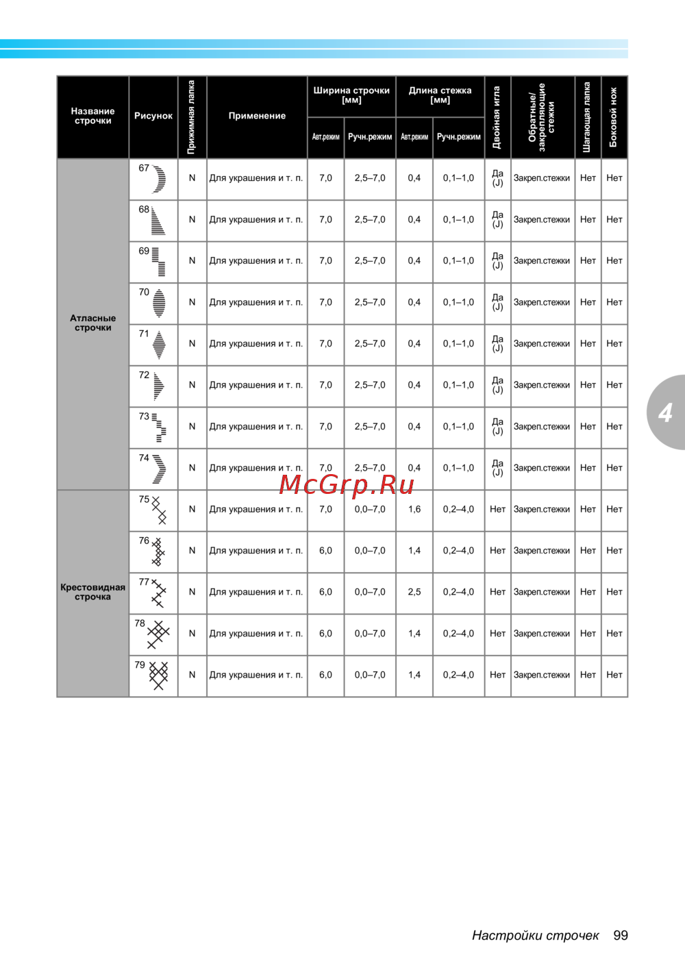 Brother INNOV-IS 300 [101/120] Настройки строчек 99