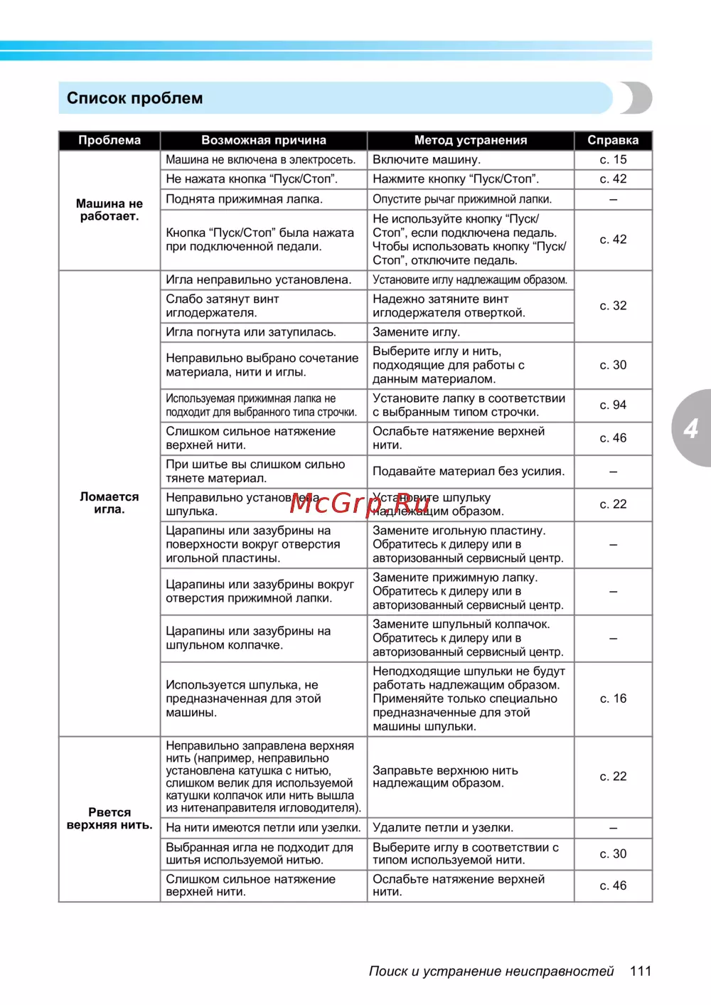 Brother INNOV-IS 300 — поиск и устранение неисправностей швейных машин [113/120]