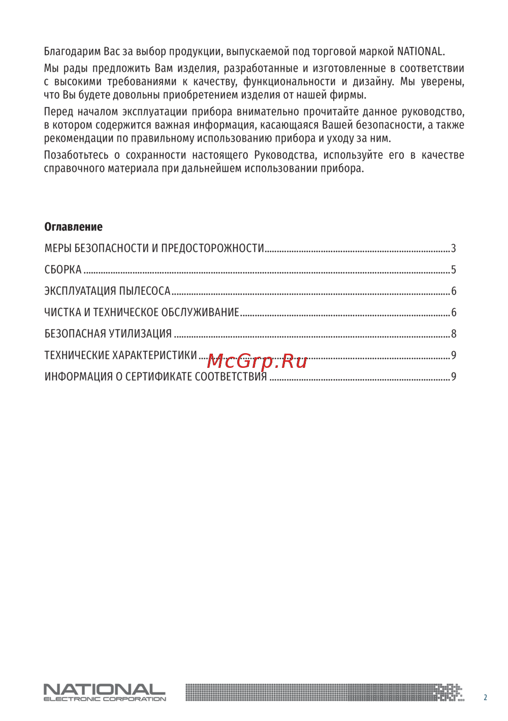 NATIONAL NH-VS1014 — руководство по эксплуатации и безопасности для бытовых приборов [2/10]