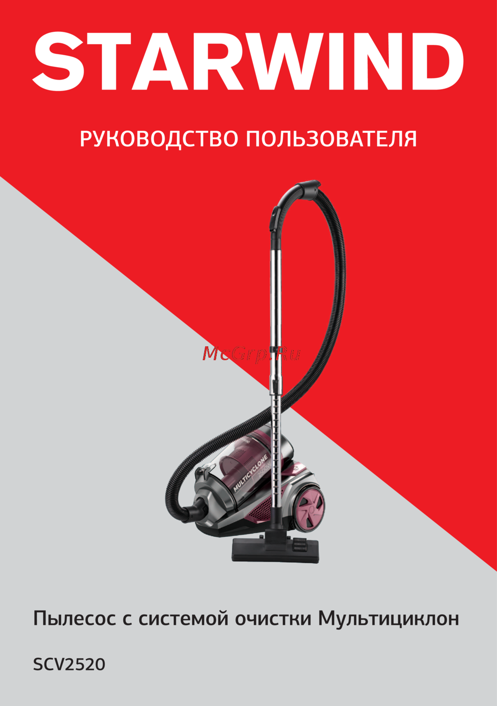 STARWIND РУКОВОДСТВО ПОЛЬЗОВАТЕЛЯ Пылесос с системой очистки Мультициклон БСУ2520