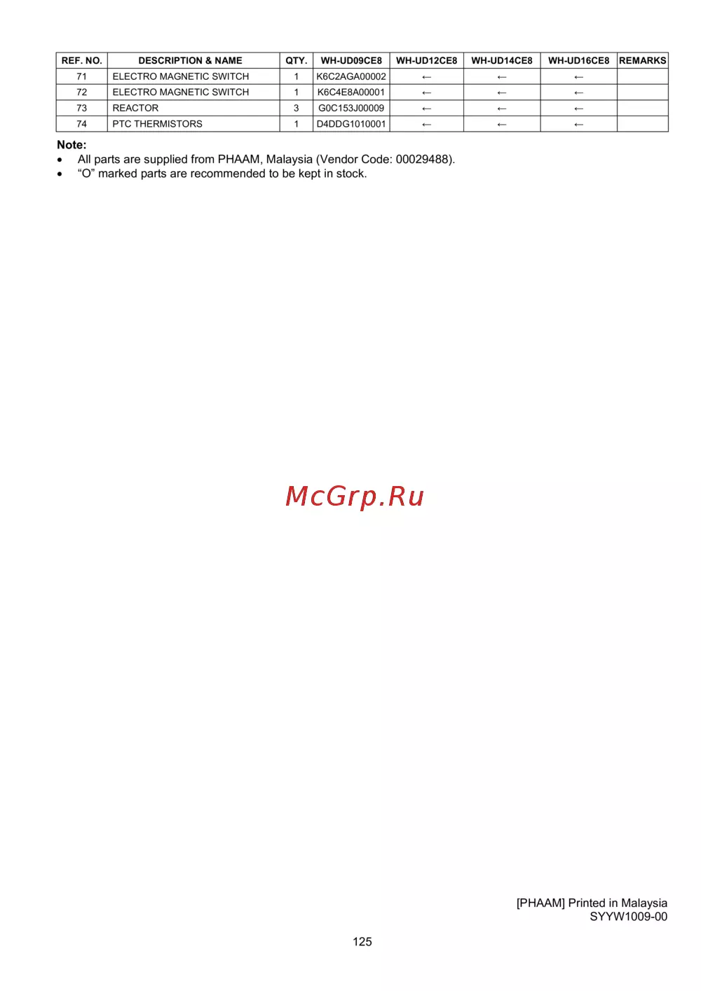 - Note all parts are supplied from phaam malaysia vendor code 00029488 o marked parts are recommended to be kept in stock p.125