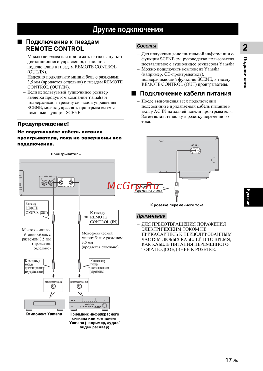 - Предупреждение во избежание пожара или удара электрическим током не подвергайте данный аппарат воздействиям дождя или влаги p.2