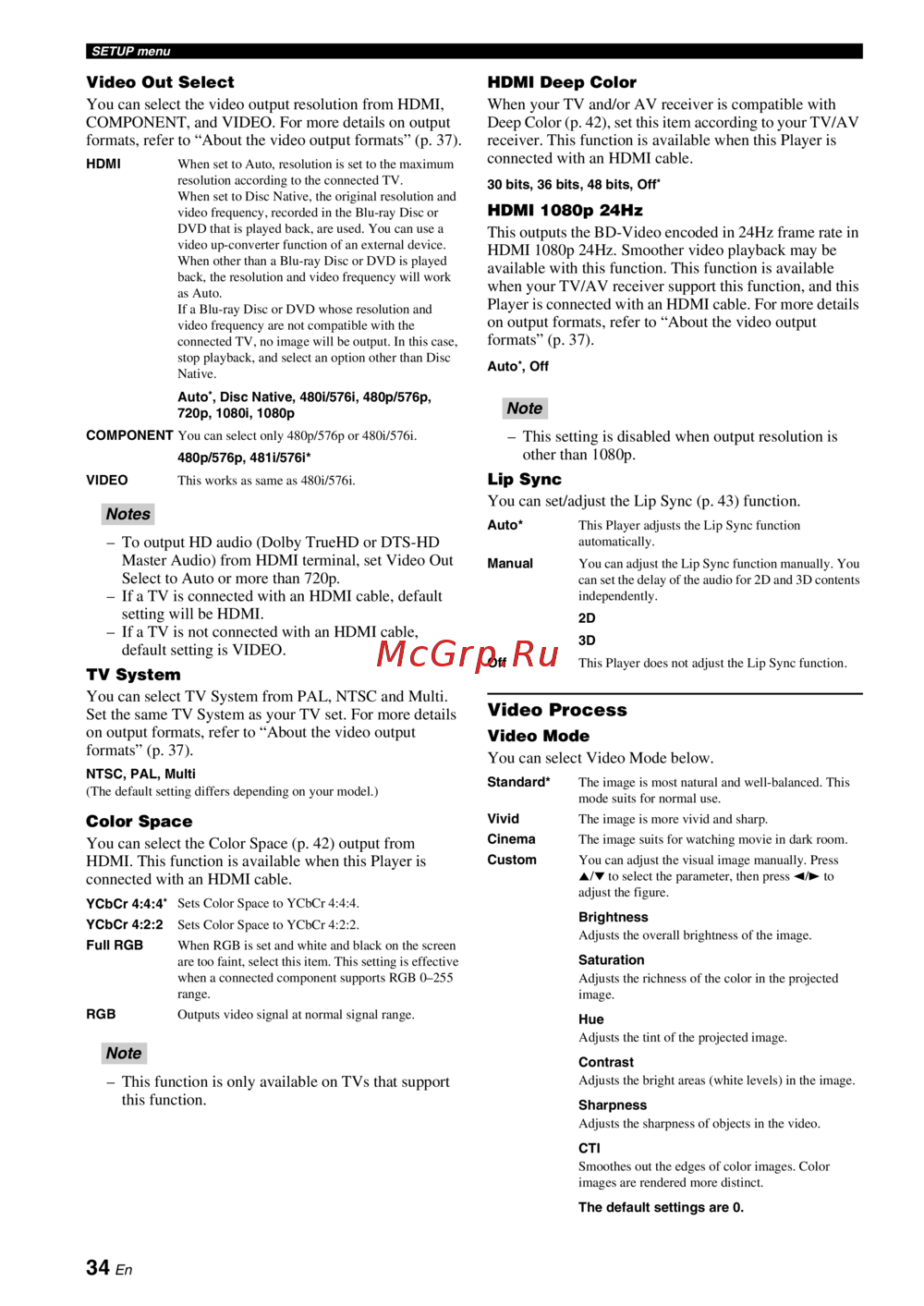 Yamaha BD-S673 Black [82/108] This setting is disabled when output resolution is other than 1080p