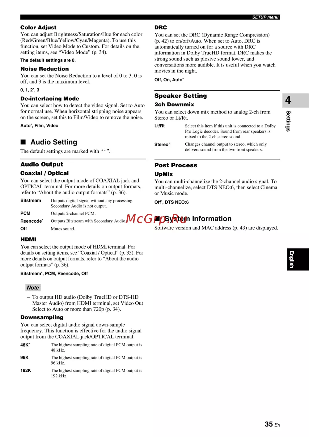 details on setting items, see “Coaxial / Optical” (p. 35). For