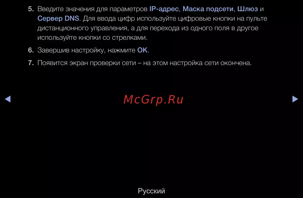 Сервер DNS. Для ввода цифр используйте цифровые кнопки на пульте