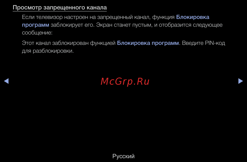 Если телевизор настроен на запрещенный канал, функция Блокировка