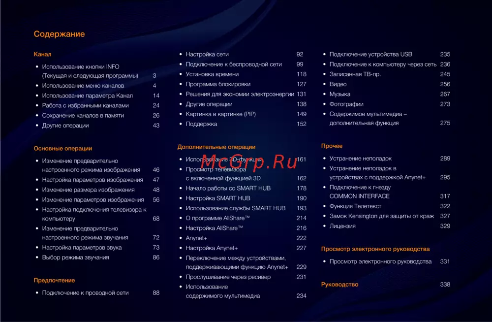 - Здесь можно найти сведения об основных функциях телевизора и инструкции по пользованию ими p.331