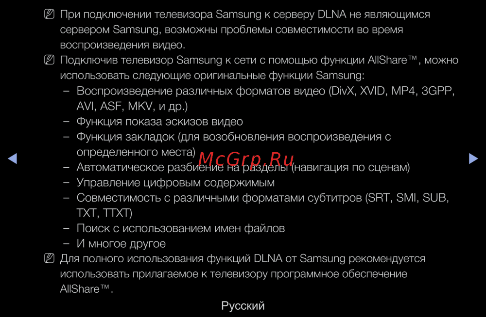 Для полного использования функций DLNA от Samsung рекомендуется