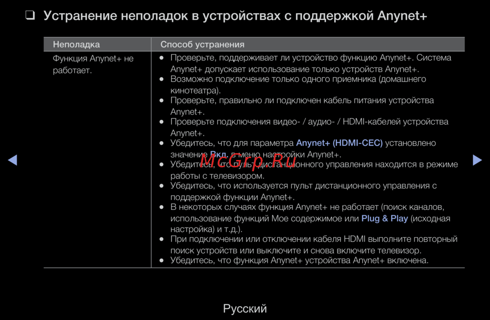 В некоторых случаях функция Anynet+ не работает (поиск каналов,