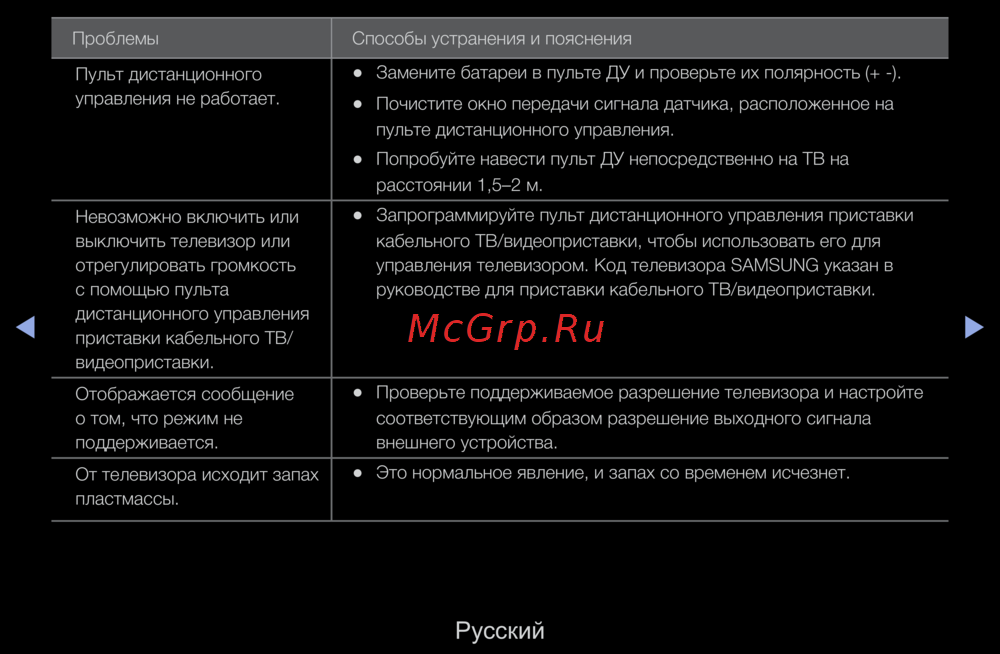 - При возникновении вопросов связанных с работой телевизора сначала просмотрите следующий список если ни один из перечисленных советов не поможет устранить неисправность посетите веб узел www samsung com и выберите пункт поддержка или обратитесь в операторский центр центр адрес которого указан на задней обложке руководства пользователя p.298