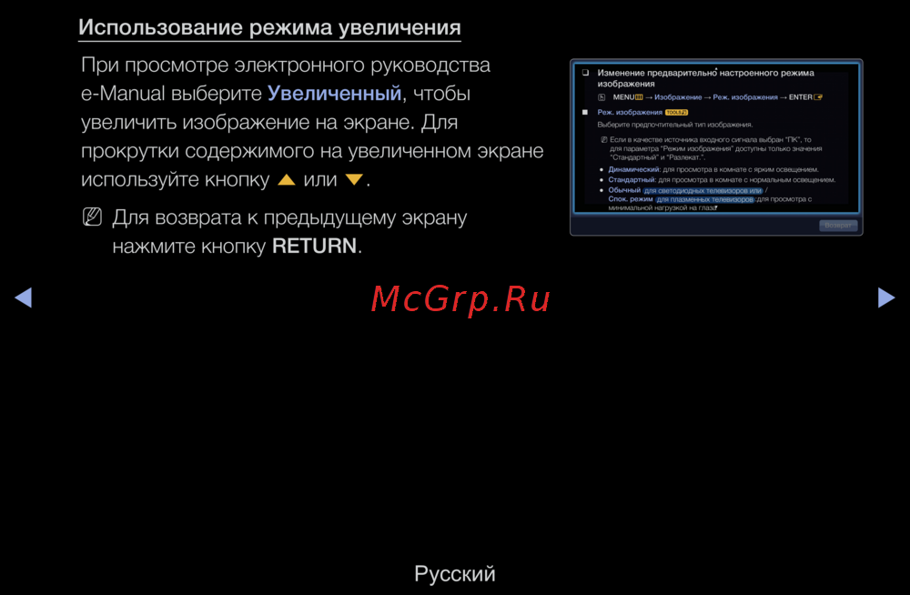 e-Manual выберите Увеличенный, чтобы