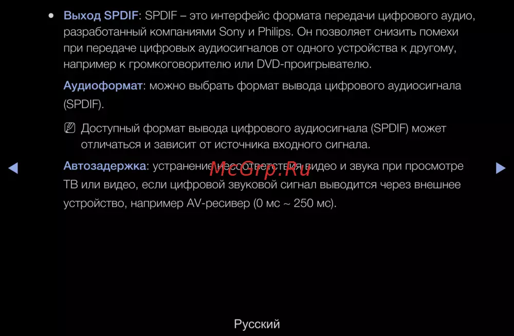 Доступный формат вывода цифрового аудиосигнала (SPDIF) может