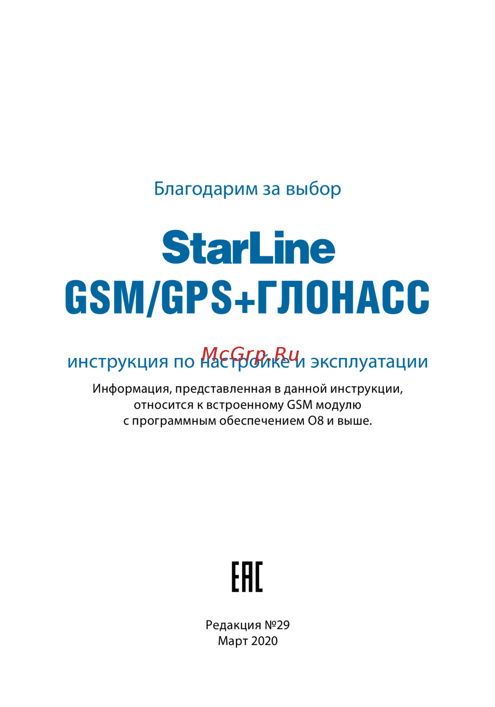 Благодарим за выбор StarLine GSM GPS ГЛОНАСС инструкция по настройке и эксплуатации Информация представленная в данной инструкции относится к встроенному GSM модулю с программным обеспечением 08 и выше ER Редакция 29 Март 2020