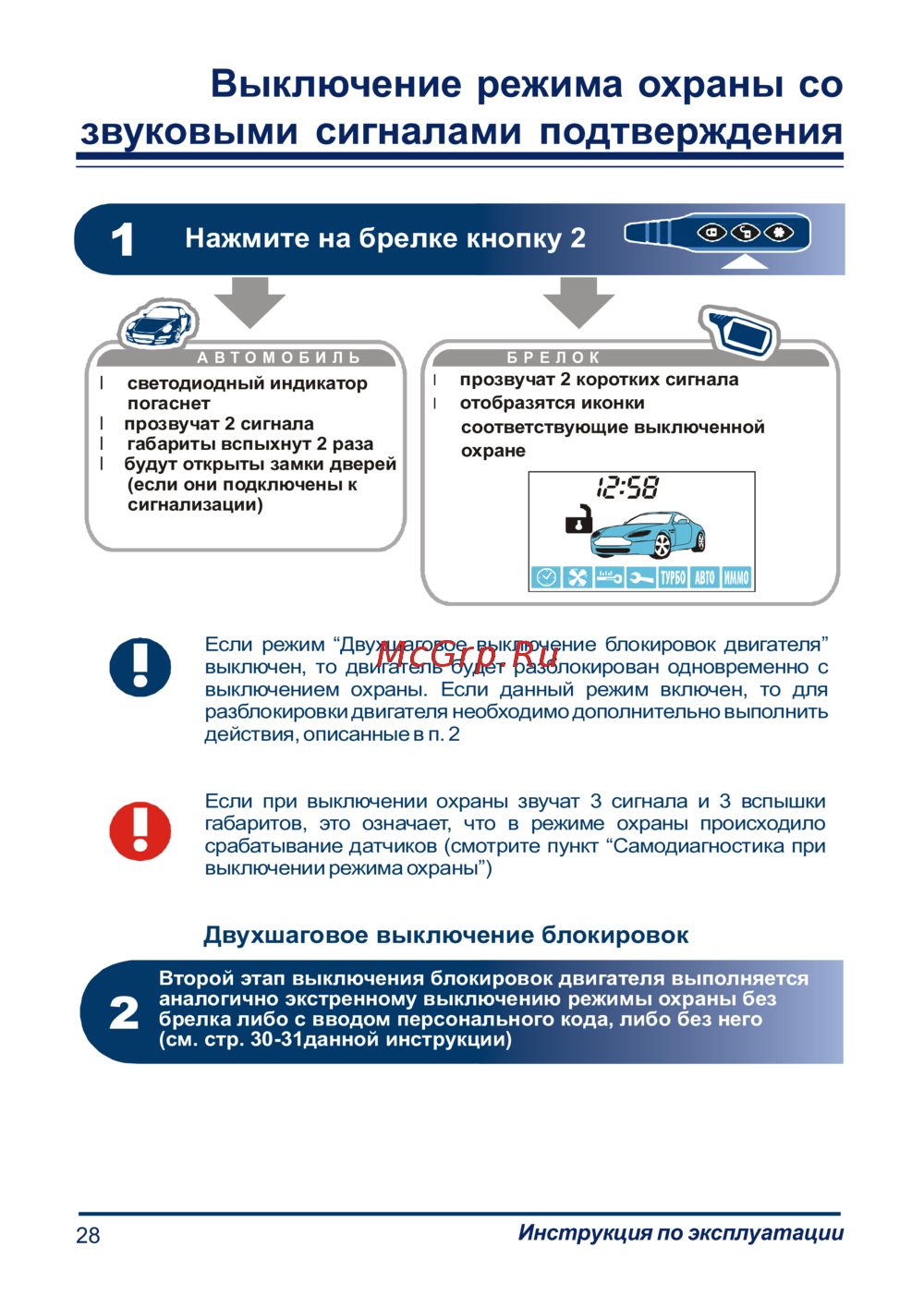 - Основные команды брелка продолжение p.70