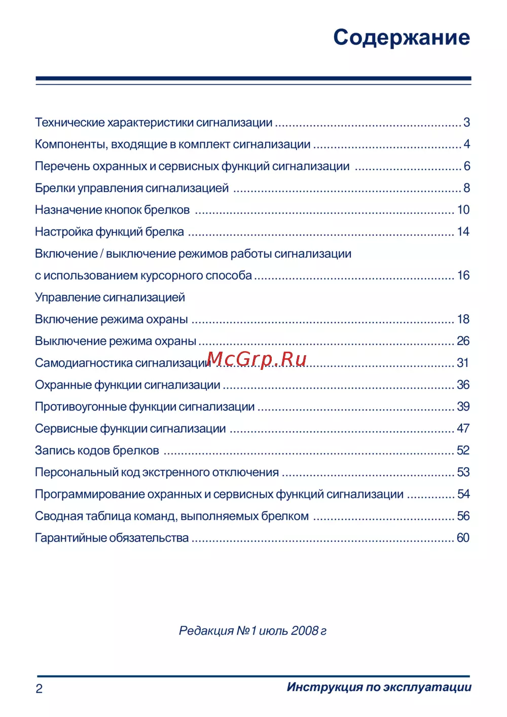 Starline C4 — инструкция по эксплуатации сигнализации: функции и настройки [2/61]