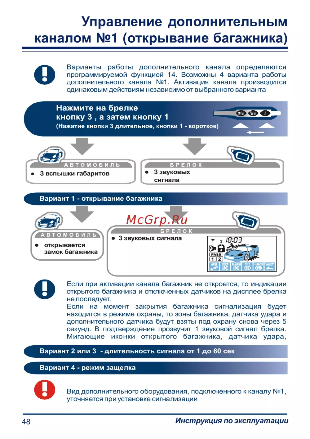 - Варианты управления дополнительным каналом 2 с помощью брелка p.50